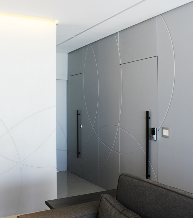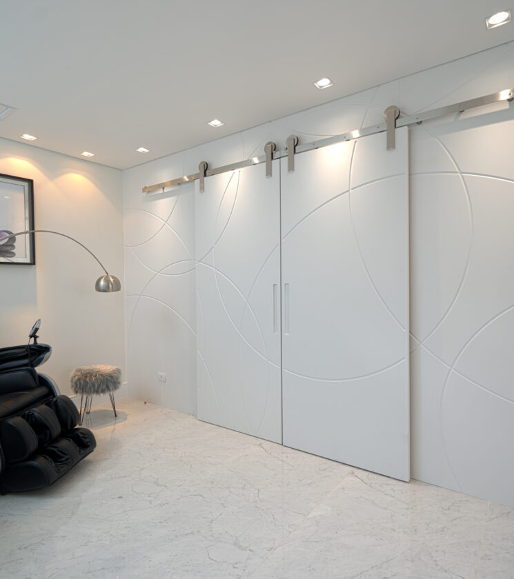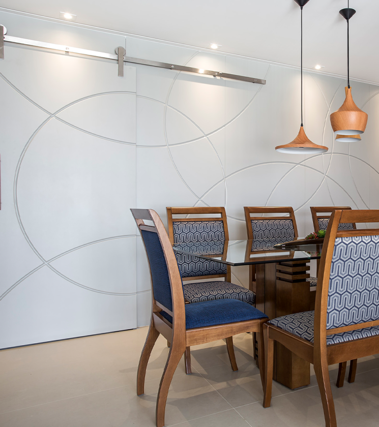 Sempre com foco em qualidade, oferecemos soluções inovadoras e eficientes, feitas sob medida e de maneira totalmente customizável conforme projeto. MDF revestido com resina pet PET. Módulo máximo de 1100 x 2700mm com espessura de 38mm.