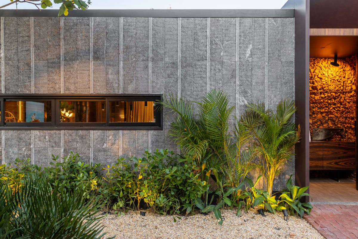 A linha Graffiatura Largo apresenta peças em pedra natural esculpidas à mão, com frisos largos e rústicos que realçam a constituição natural das rochas, expondo seus veios, tons e nuances diversas. Os produtos são revestimentos para aplicação em paredes, tanto internas quanto externas, podendo ser usados inclusive em ambientes molhados como cascatas e espelhos d’água. COD:RGCB2060