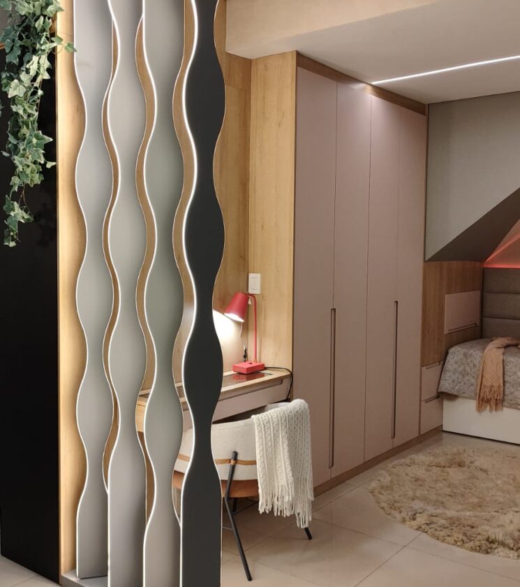Sempre com foco em qualidade, oferecemos soluções inovadoras e eficientes, feitas sob medida e de maneira totalmente customizável conforme projeto. MDF de 25mm revestido com resina pet. Módulo máximo de 250 x 2700mm com espessura de 25mm.