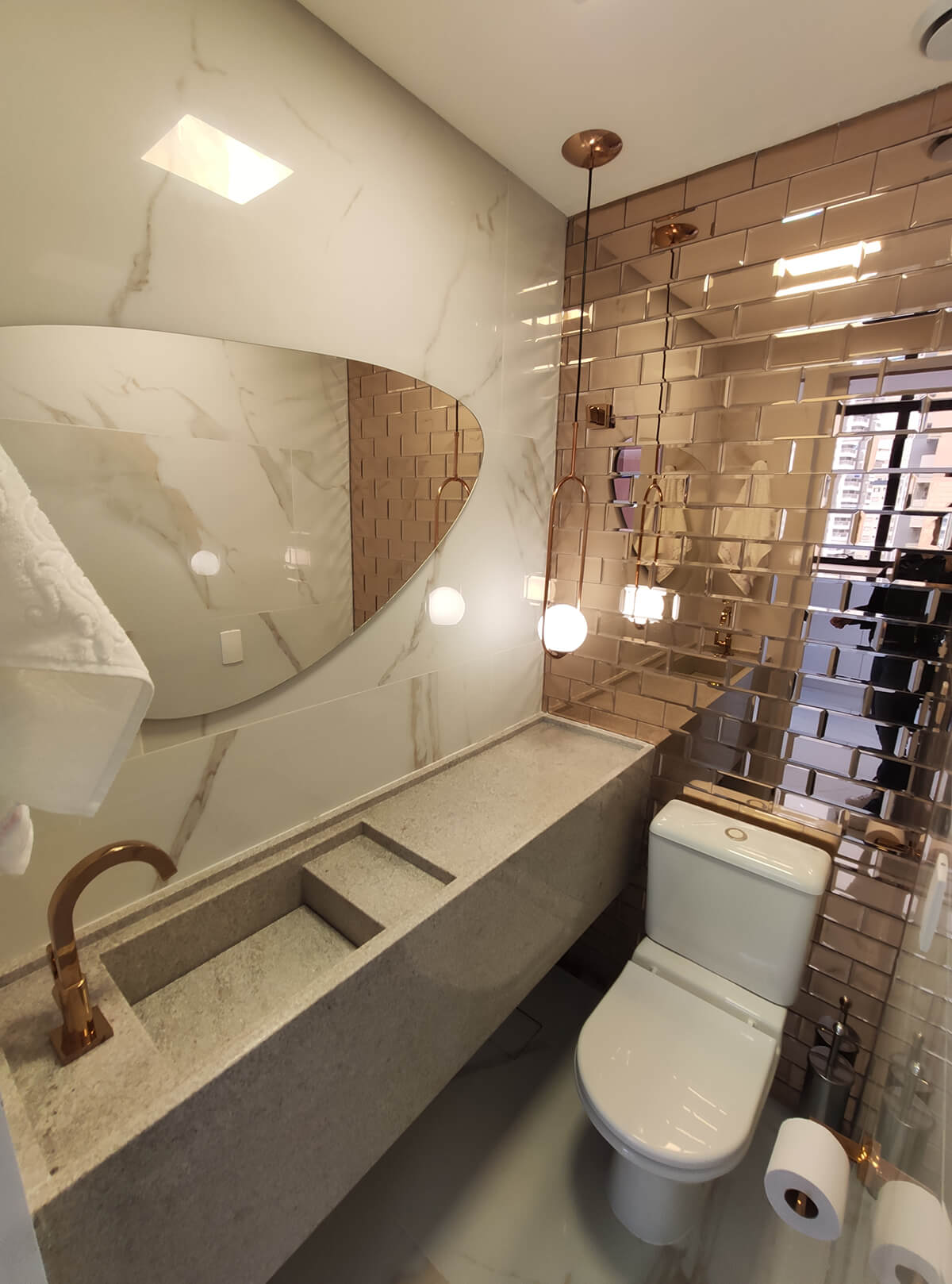 Linha Mirror Brick – Material para assentamento: Utilize adesivo (substância fixadora) como silicone de cura neutra, ou fita dupla face, isentos de solventes. Áreas de instalação: Lavabo, quarto, cozinha, sala.