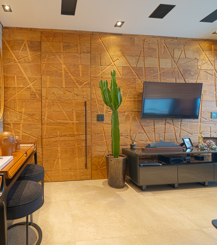 Sempre com foco em qualidade, oferecemos soluções inovadoras e eficientes, feitas sob medida e de maneira totalmente customizável conforme projeto. MDF revestido com resina pet PET. Módulo máximo de 1100 x 2700mm com espessura de 38mm.
