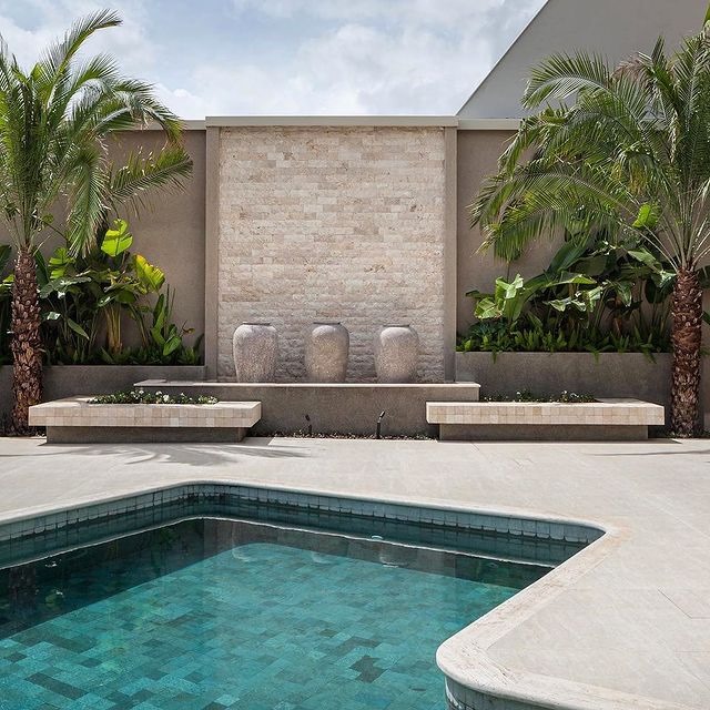O Travertino Turquia RockFace é uma pedra calcária de tom bege claro com nuances marrons e cristais sutis. Natural e sofisticado, é ideal para salas, áreas de lazer, muros e paredes.